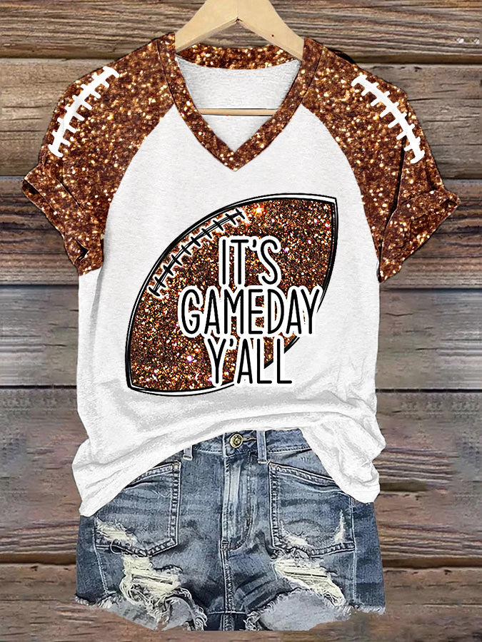 Femmes C'est Football Y'all Glitter Imprimer Football Fans Cadeau Casual V-Neck Tee
