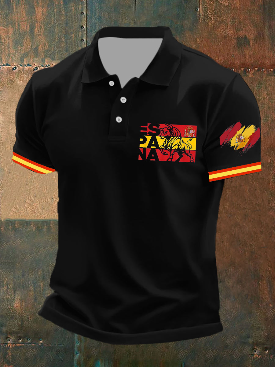 Haut à manches courtes imprimé drapeau de l'Espagne pour hommes