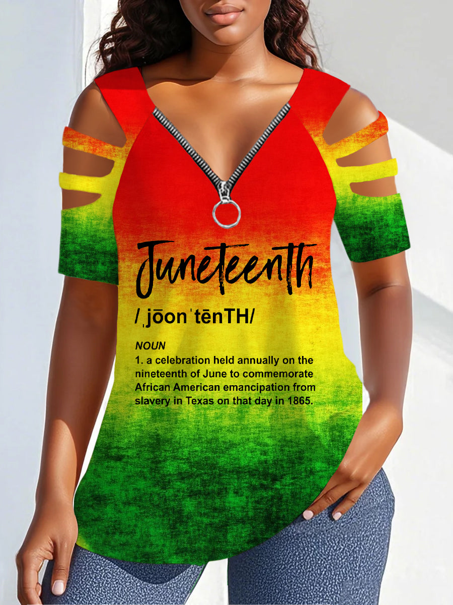 Imprimé V-Neck Zipper Off-Shoulder Tee des femmes