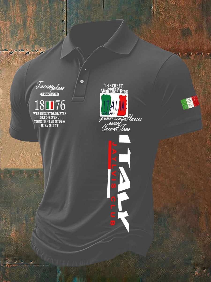 Polo décontracté imprimé drapeau italien pour hommes