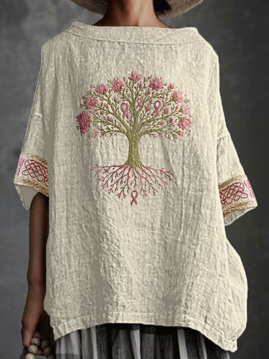 Cancer du sein féminin Le ruban rose est le haut imprimé de l'arbre de la santé