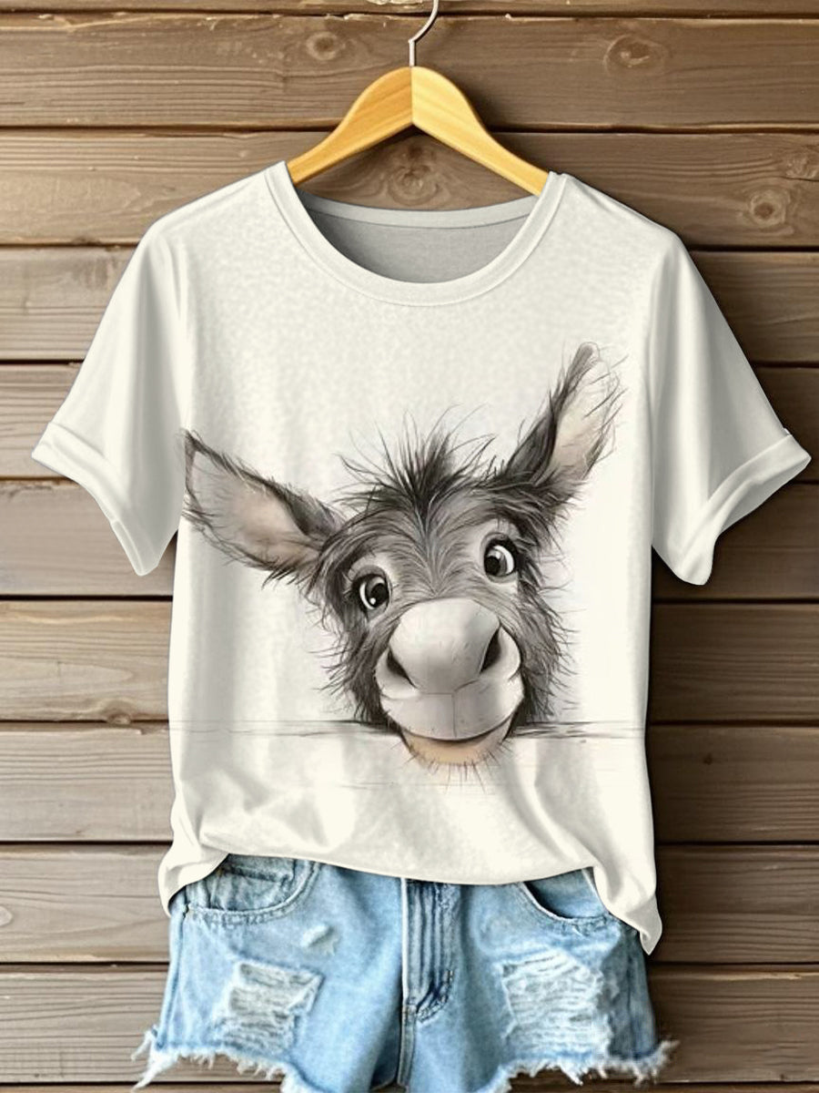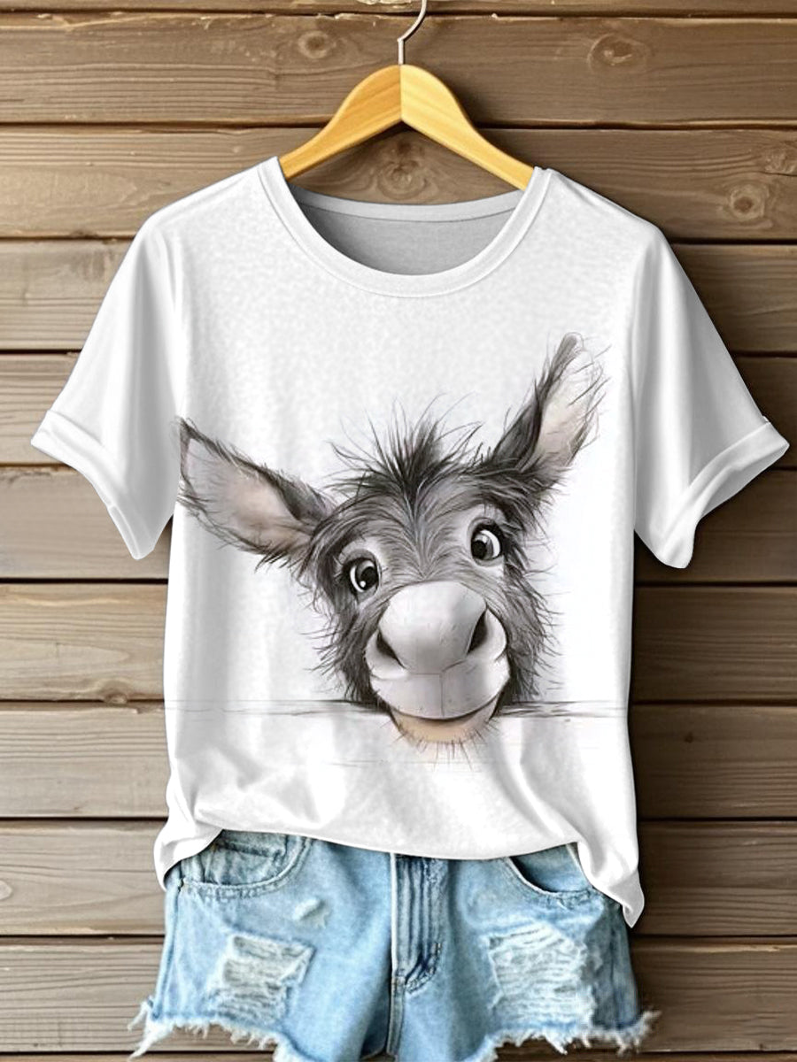 Drôle mignon âne Imprimer Casual Tee des femmes