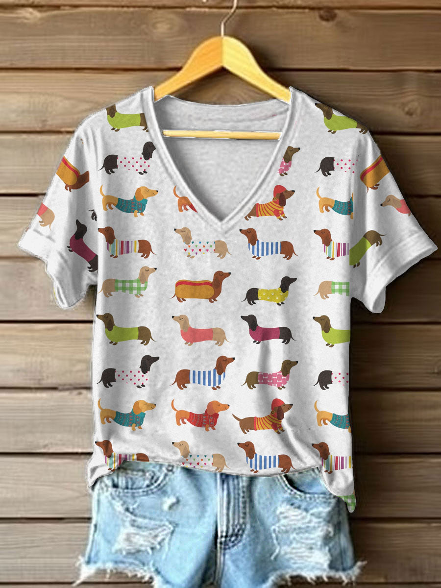 Drôle Teckel Art Imprimer V-Neck T-Shirt des femmes