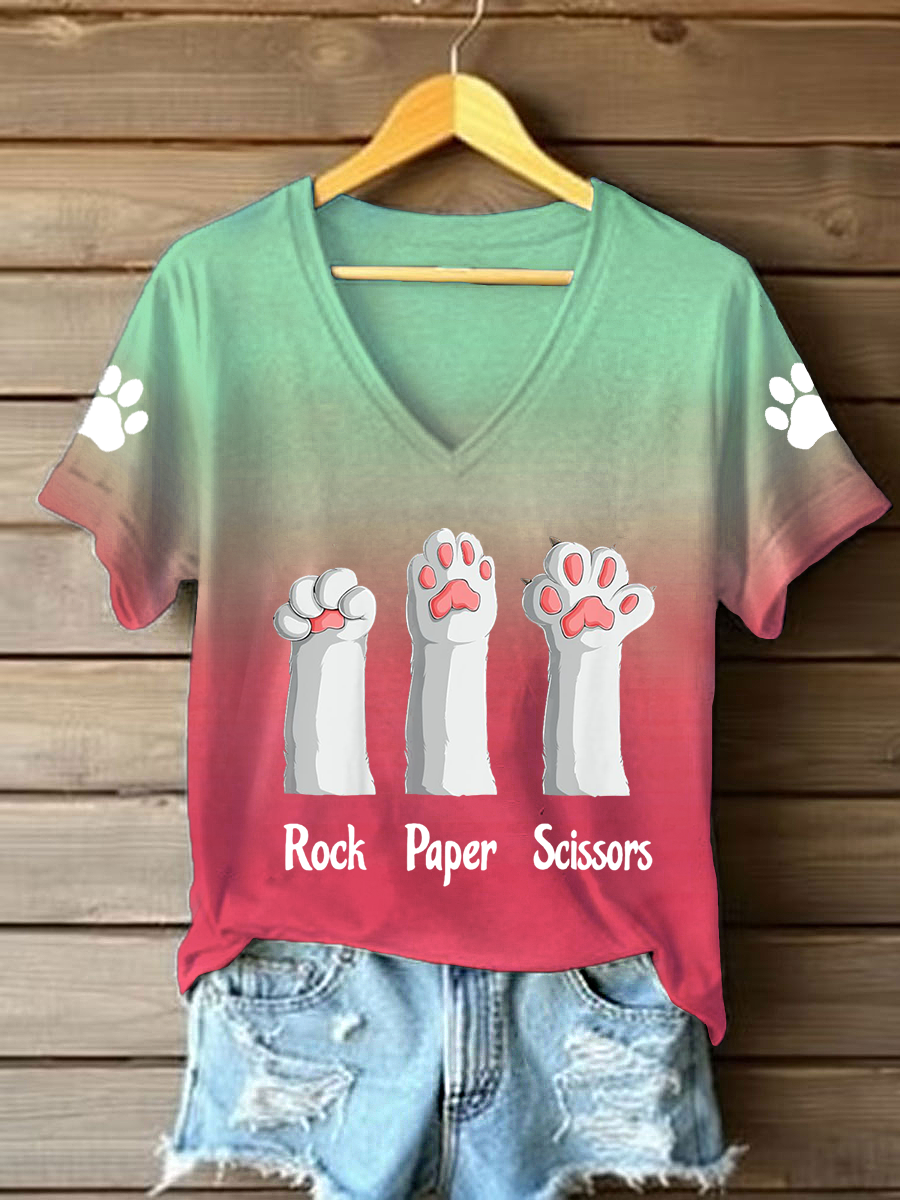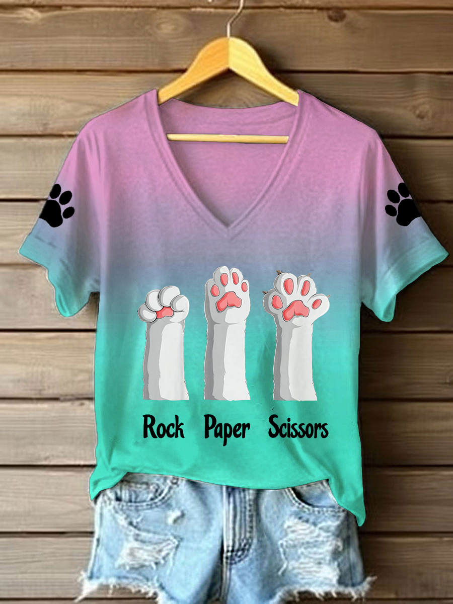 Femmes rock papier ciseaux chat patte v-cou T-shirts
