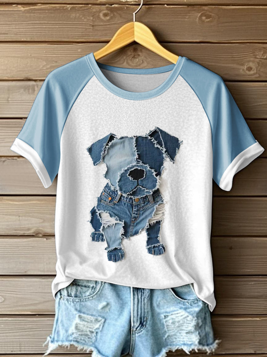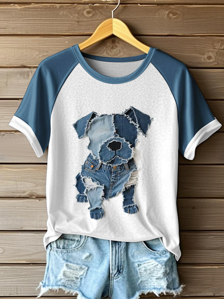 Motif chien mignon Patchwork Art T-Shirt des femmes