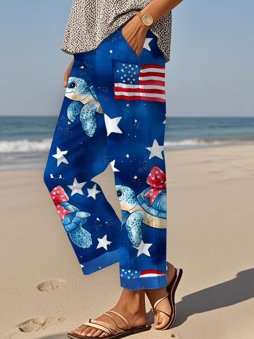 Pantalons décontractés Beach Turtle America Flag Print pour femmes