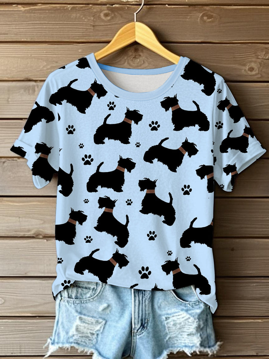 Scottish Terrier Imprimé O-cou T-shirt à manches courtes pour femmes