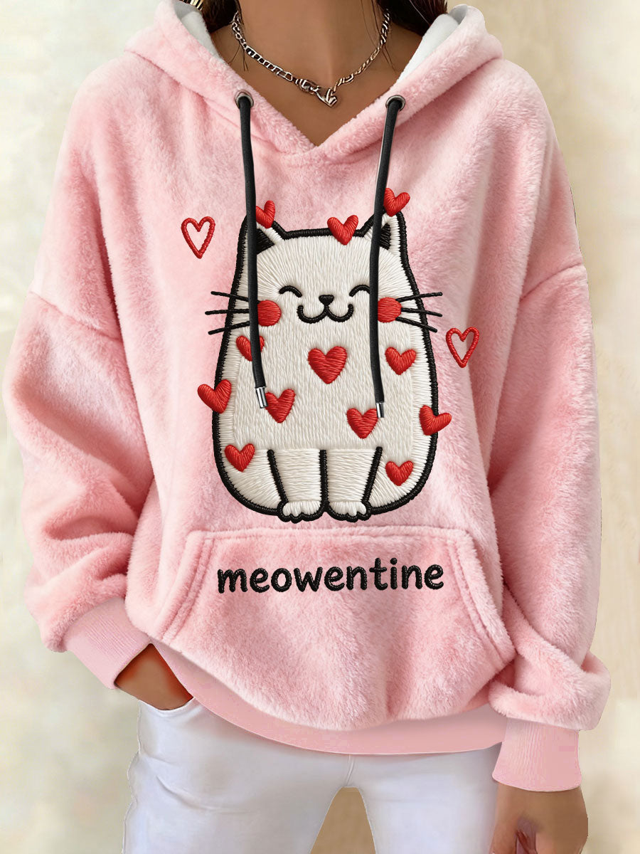 Sweat à capuche en flanelle pour femme Saint Valentin Cat Meowentine