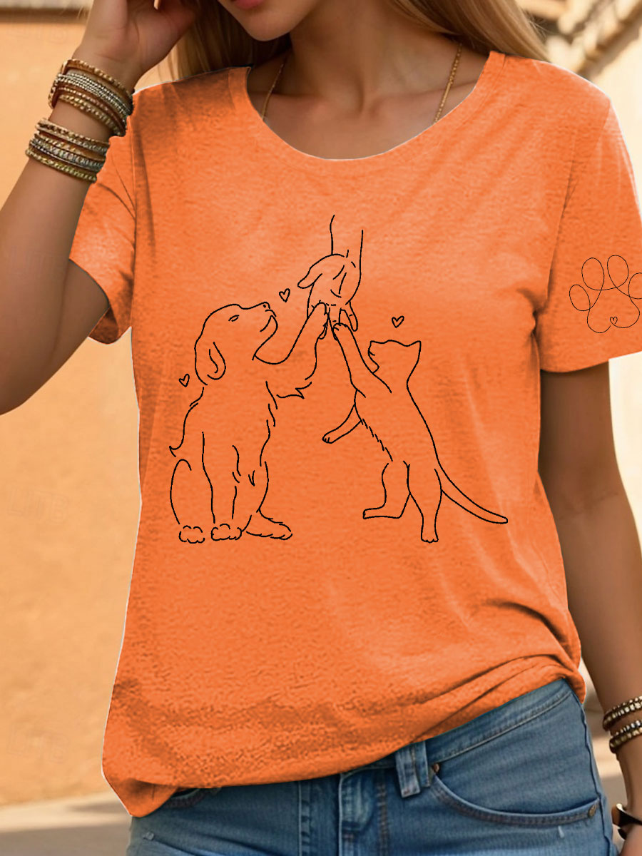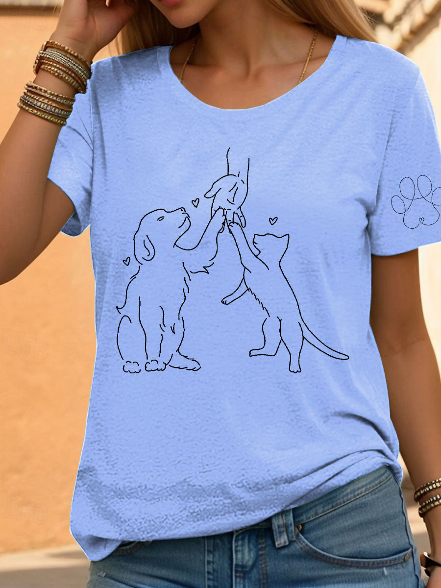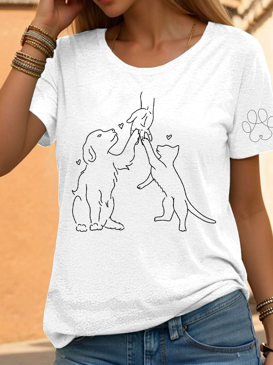 T-shirt décontracté imprimé à la main et à la patte pour femmes