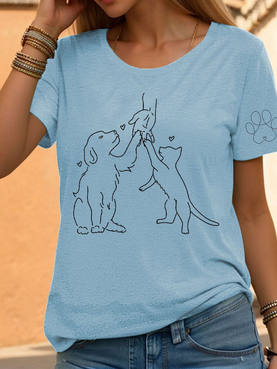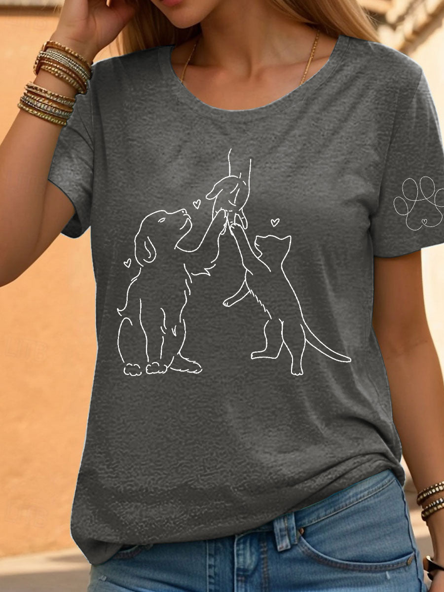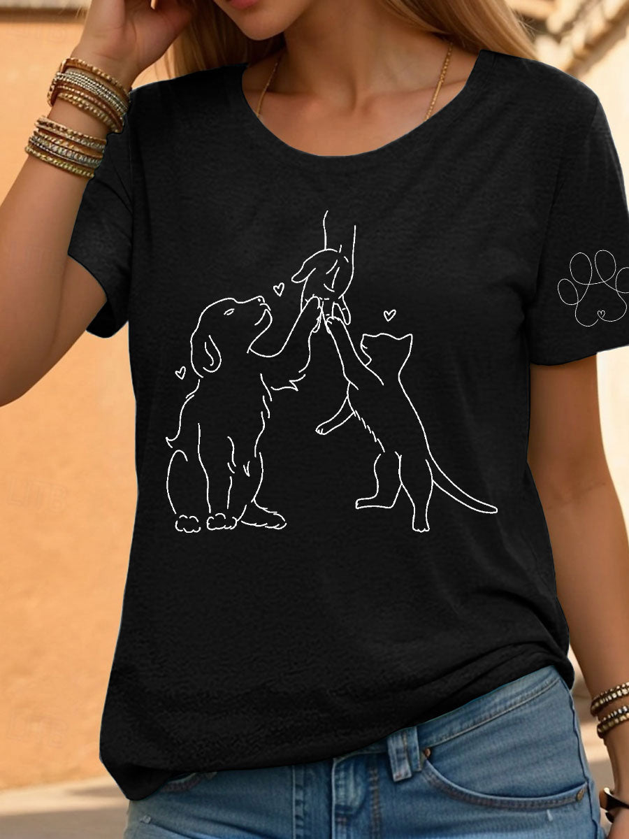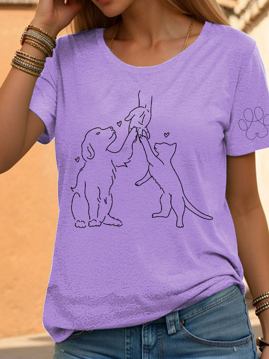 T-shirt décontracté imprimé à la main et à la patte pour femmes