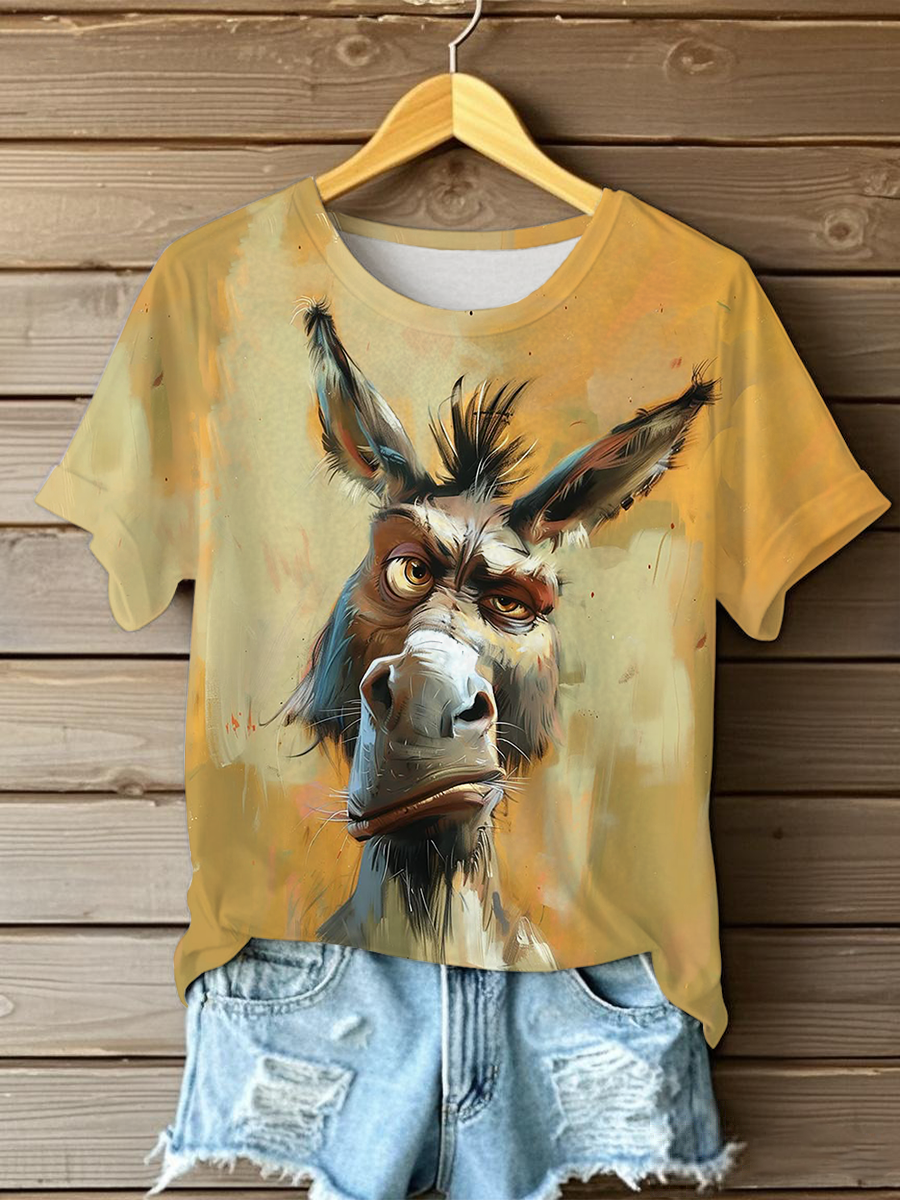 T-shirt décontracté imprimé drôle d'âne pour femmes