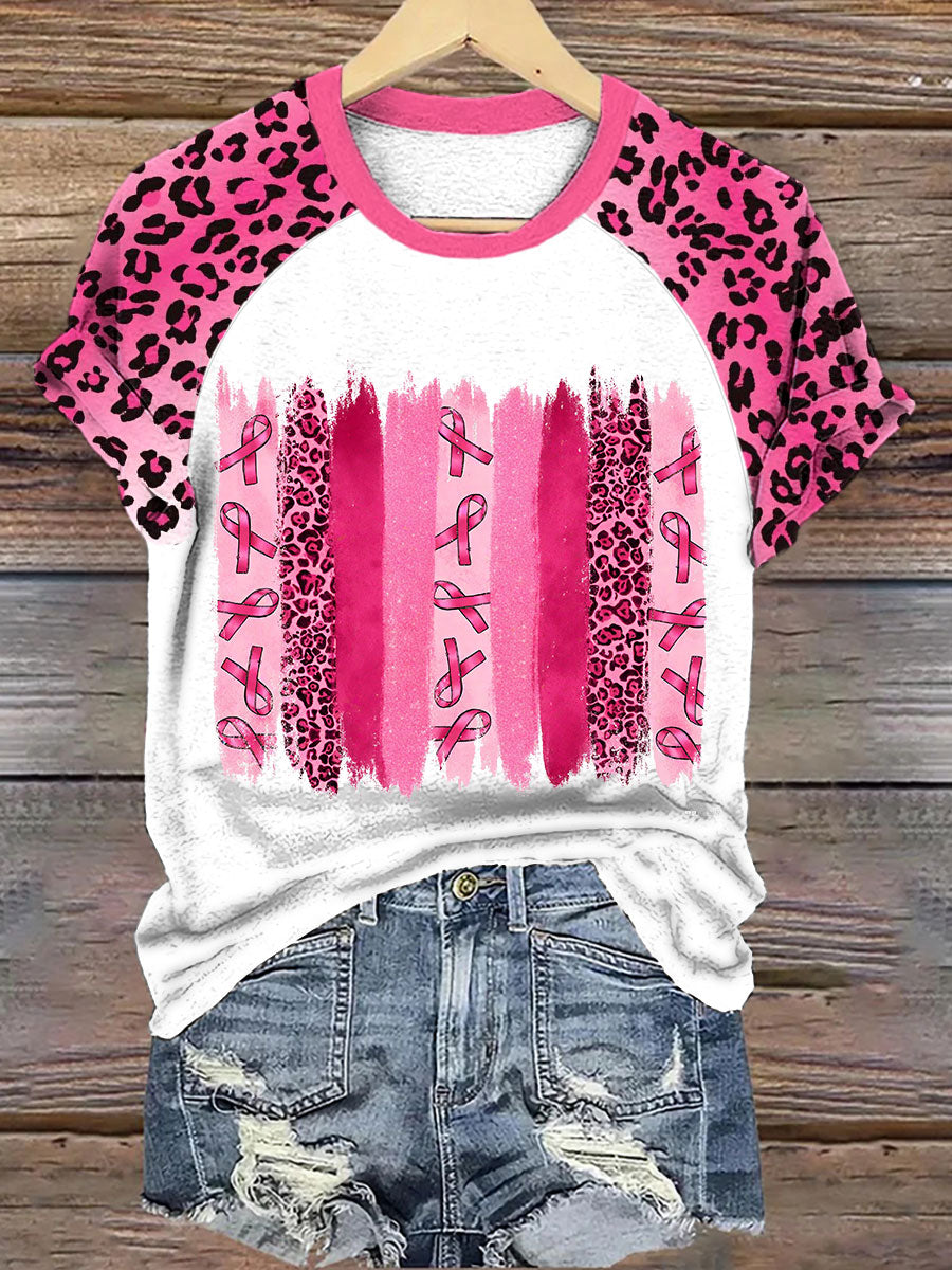 Femmes cancer du sein sensibilisation rose ruban imprimé léopard T-shirt
