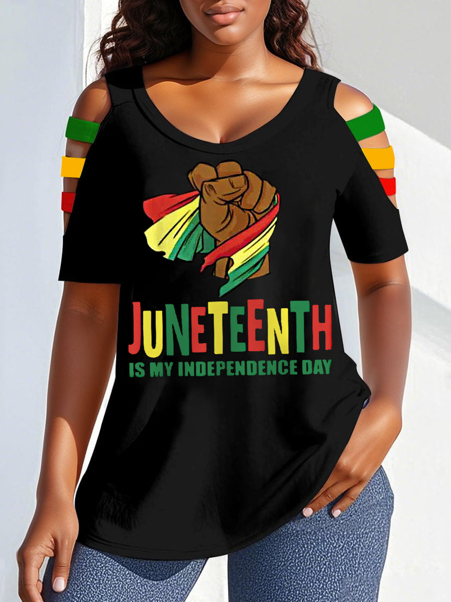 est mon jour de l'indépendance des femmes T-shirt creux décontracté