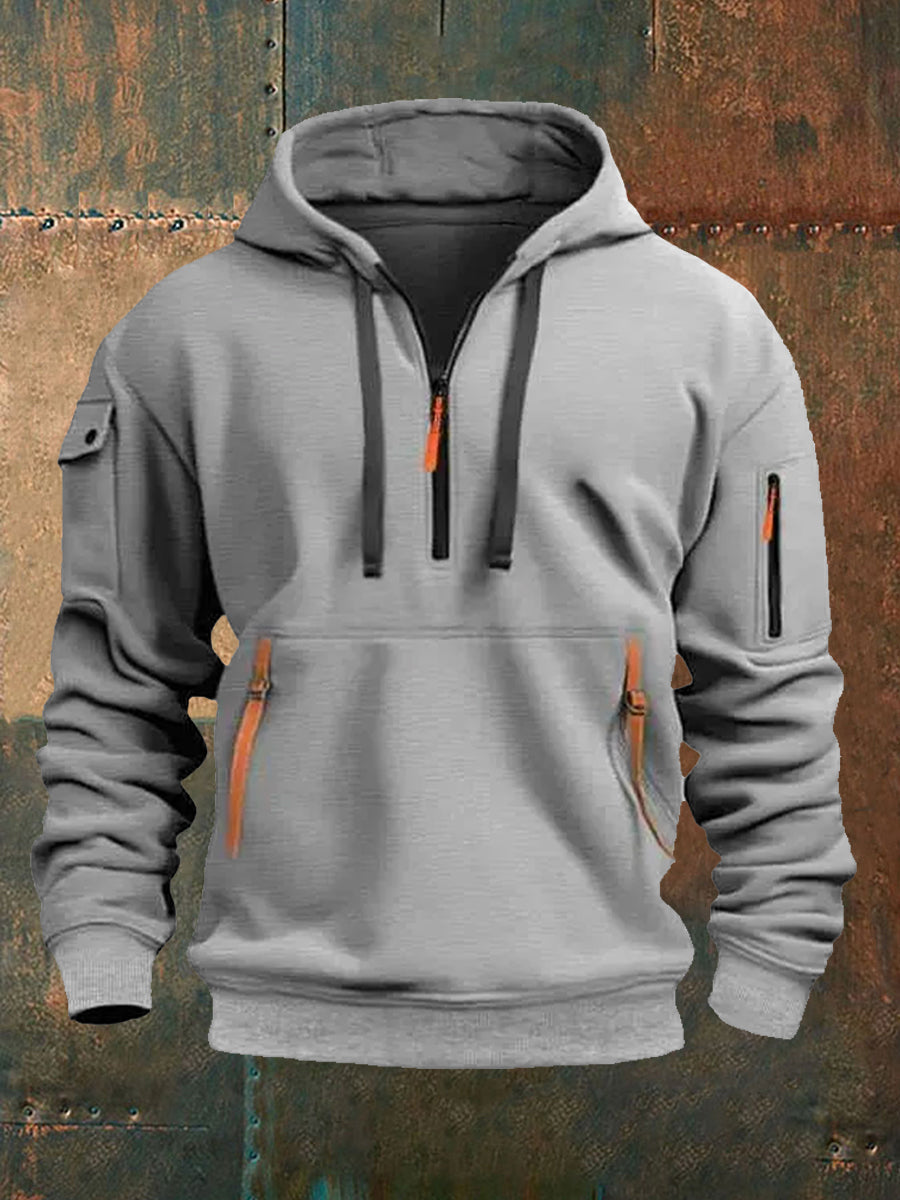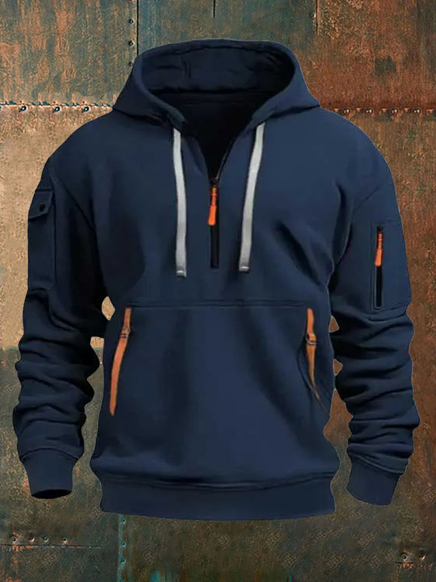 Sweat à capuche en molleton en peluche de poche de couleur unie pour hommes