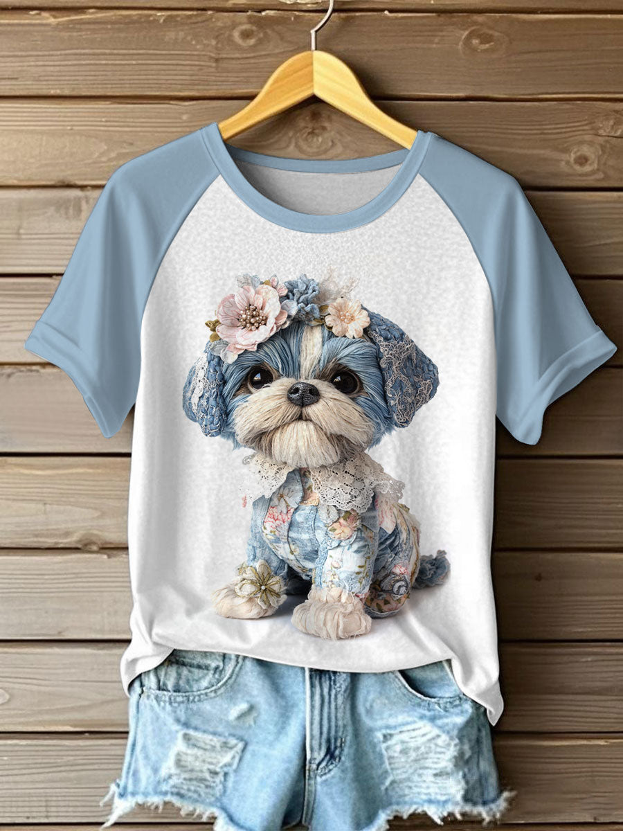 T-shirts décontractés à imprimé chien pour femmes
