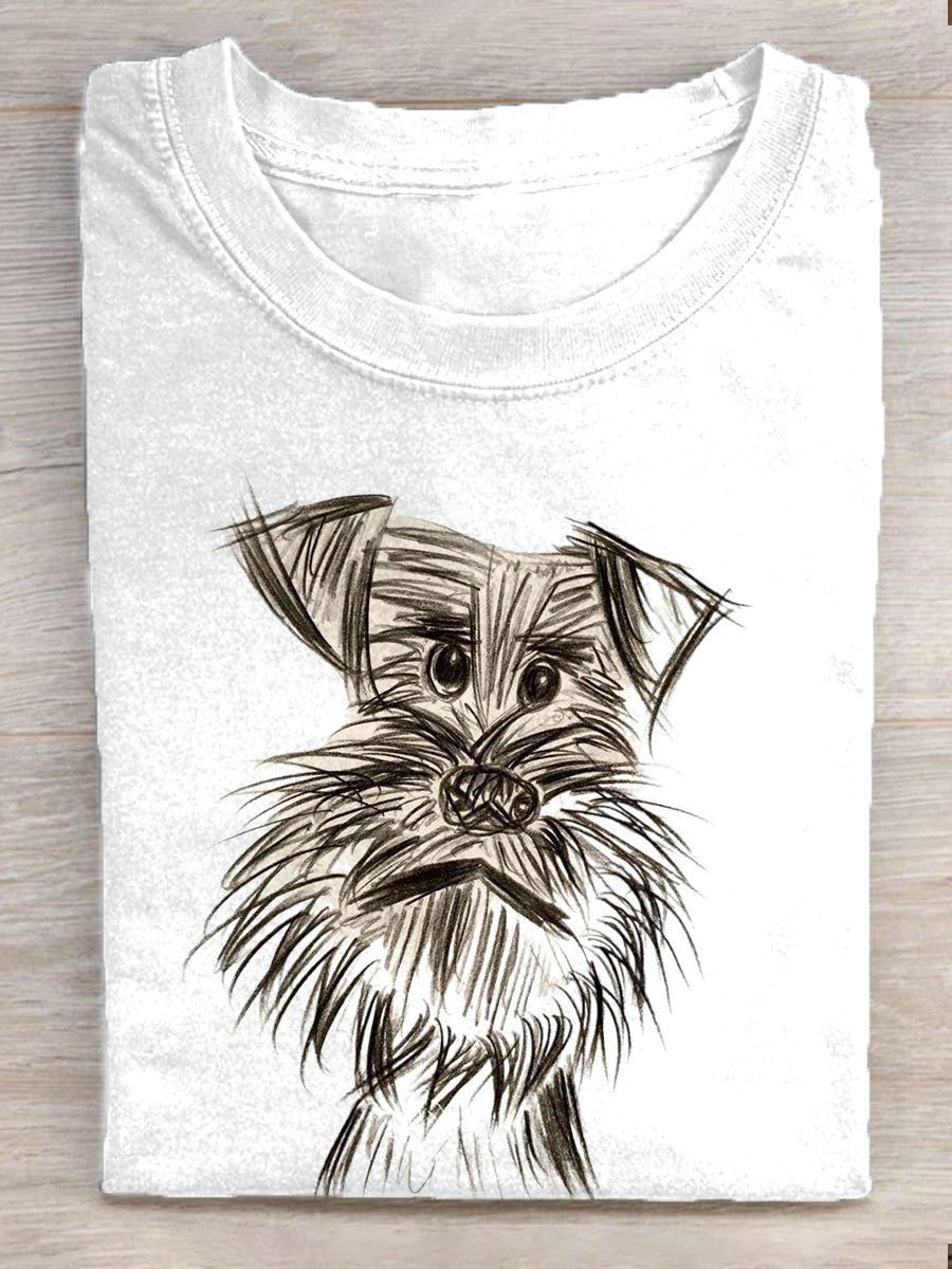 Vintage Dog Art Imprimer T-shirt à manches courtes des femmes