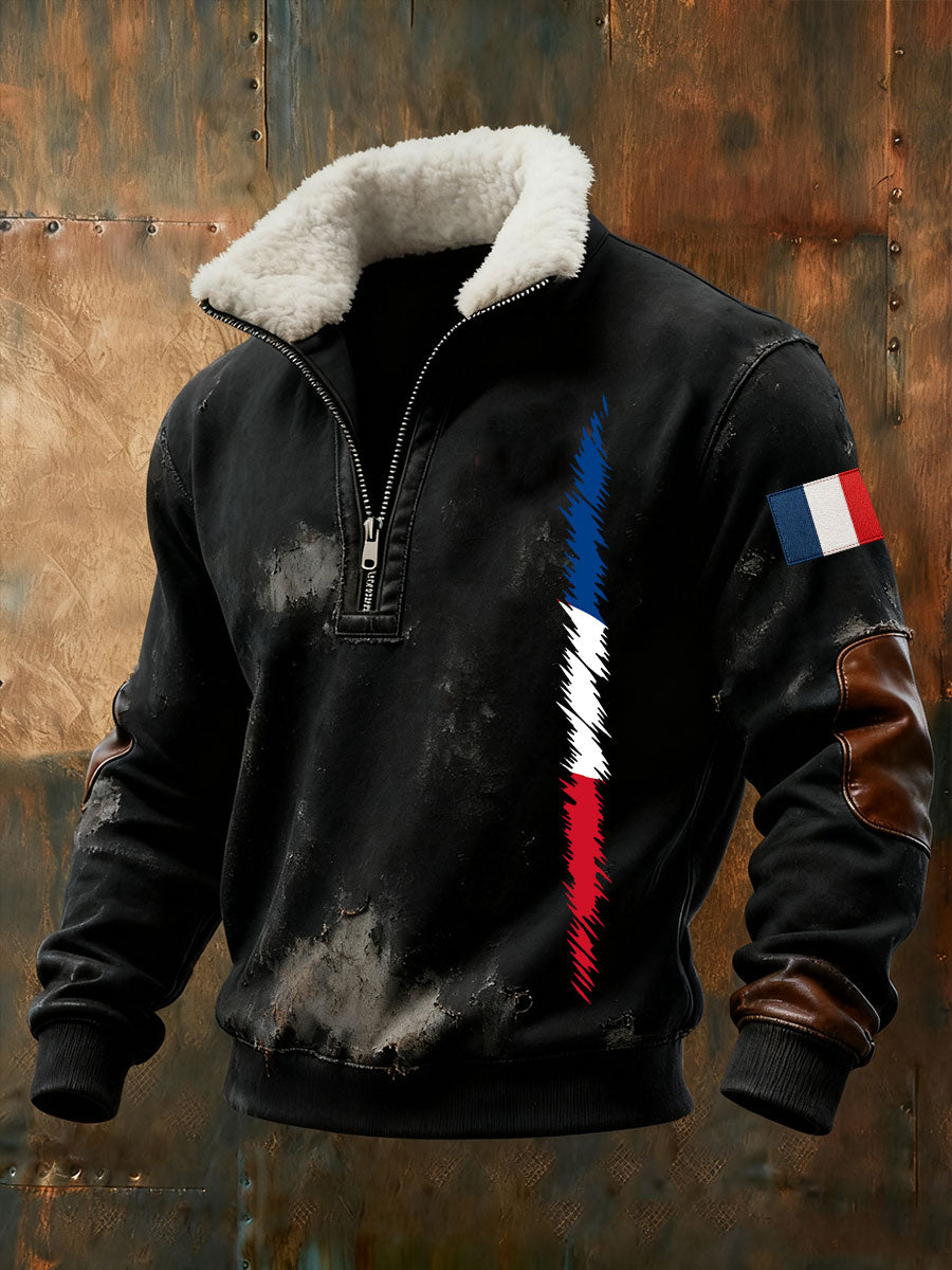Chandail à capuchon avec fermeture éclair France Timbre Baggy Homme