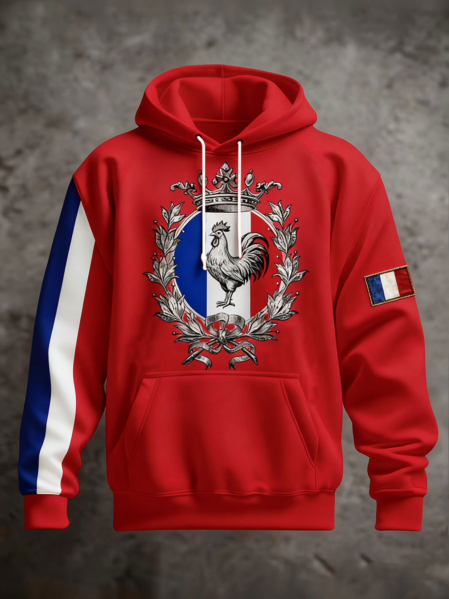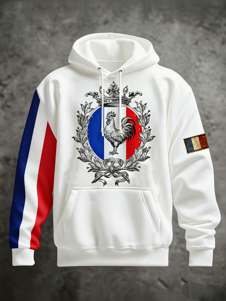 Chandail à capuchon surdimensionné avec poches Drapeau Français Le Coq Gaulois Homme