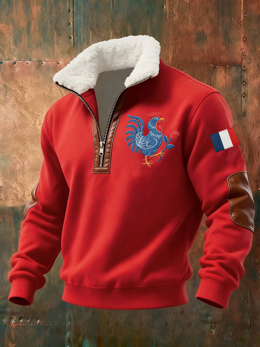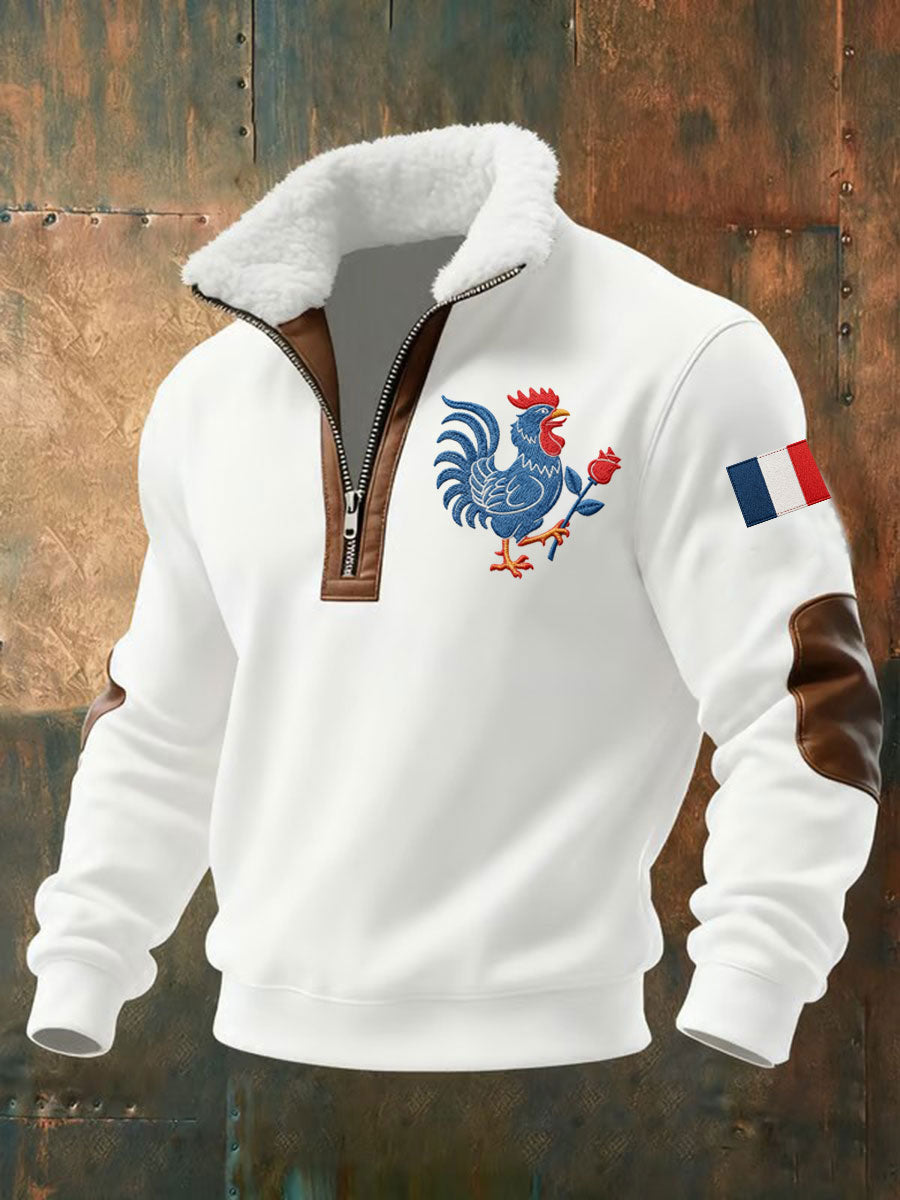 Chandail à capuchon zippé Drapeau Français Le Coq Gaulois pour homme