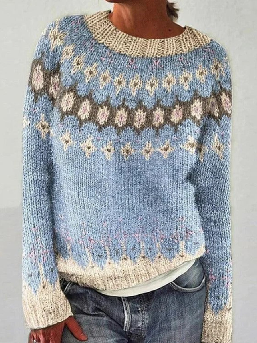 Chandail islandais ras du cou des femmes Loose Pullover