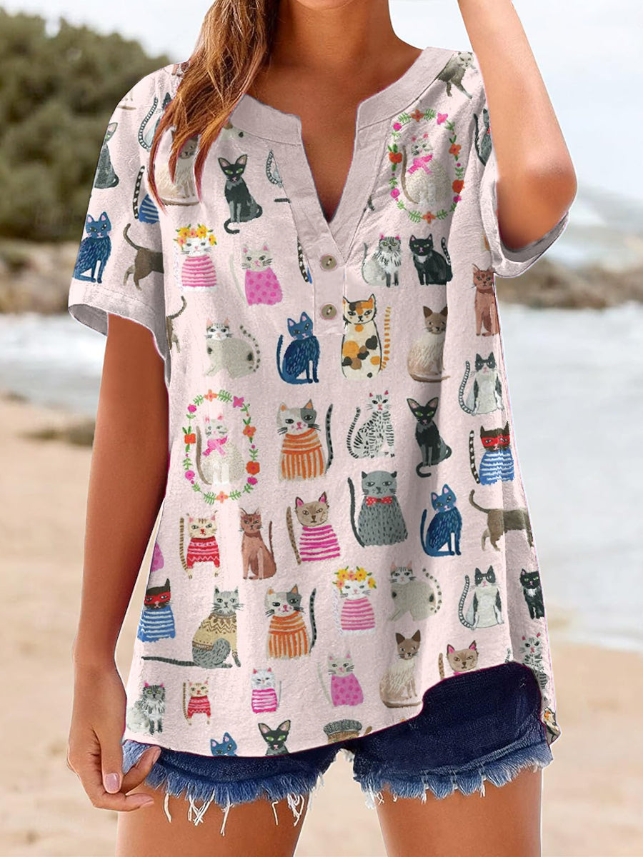 Chemise Femme Cat Art Print Lin