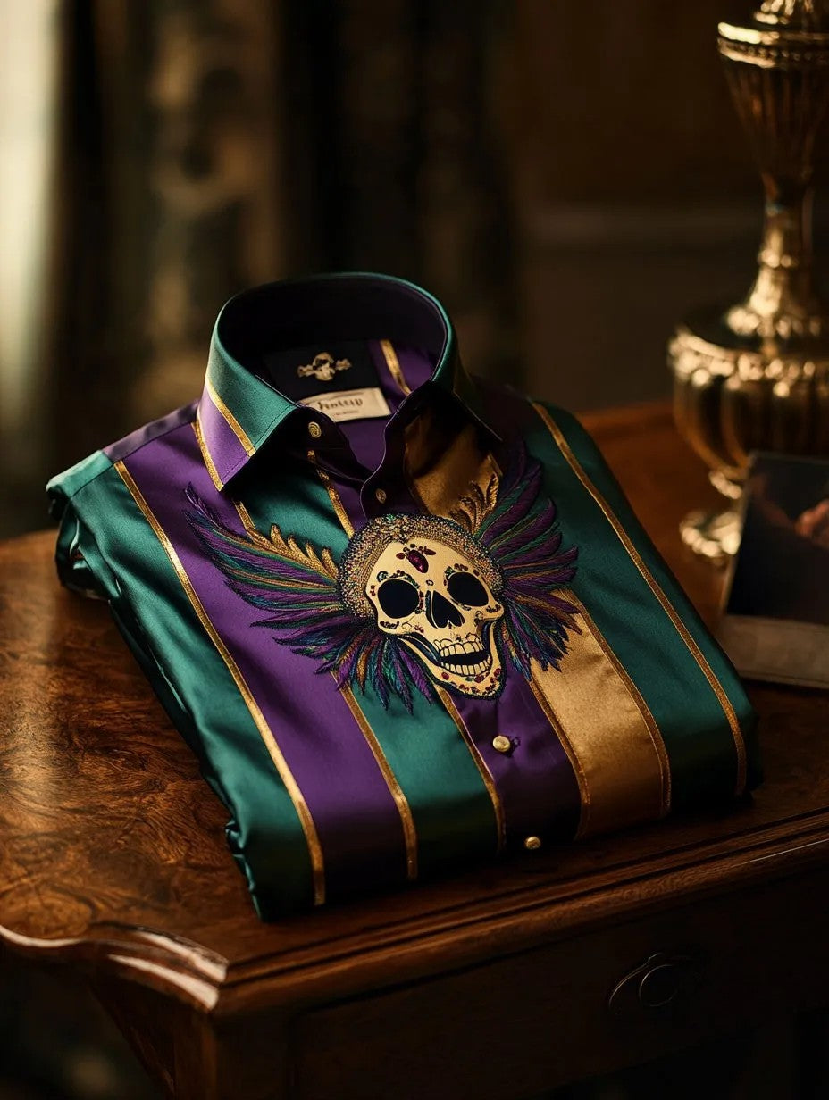 Chemise Homme Satin Crâne Manches Longues