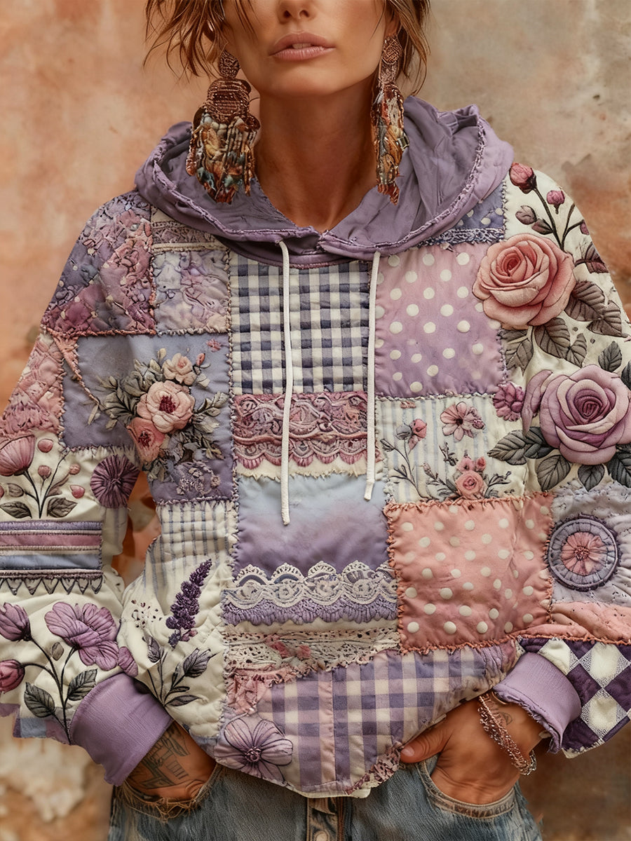 Femmes Alzheimer's Awareness Violet Floral Patchwork Capuche