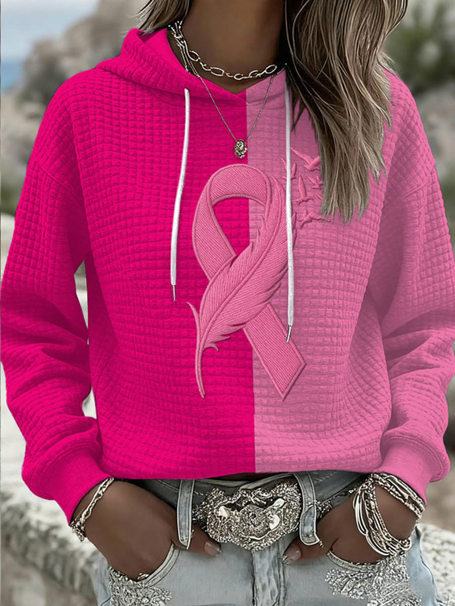 Femmes du cancer du sein occasionnels ruban contraste Plaid Hoodie