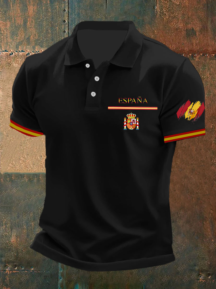 Haut à manches courtes imprimé drapeau de l'Espagne pour hommes
