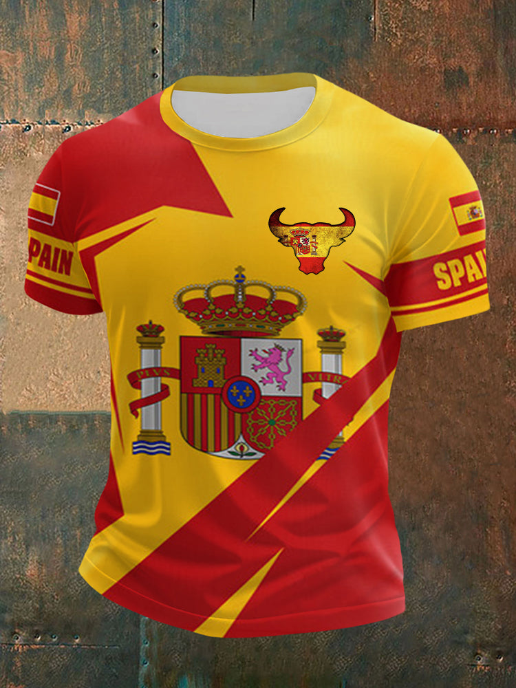 Haut à manches courtes imprimé drapeau de l'Espagne pour hommes