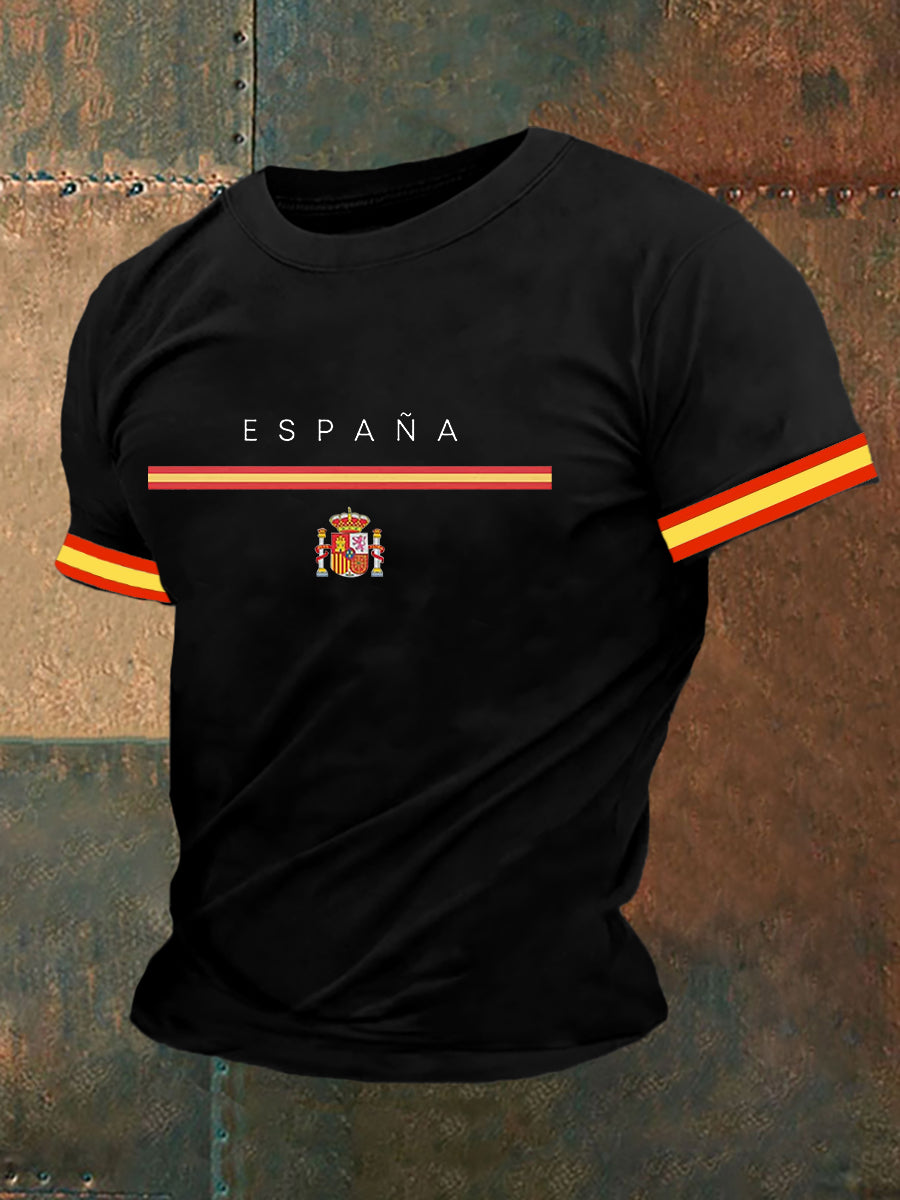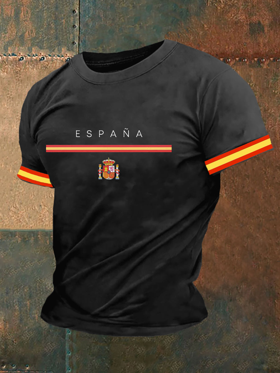 Haut à manches courtes imprimé drapeau de l'Espagne pour hommes