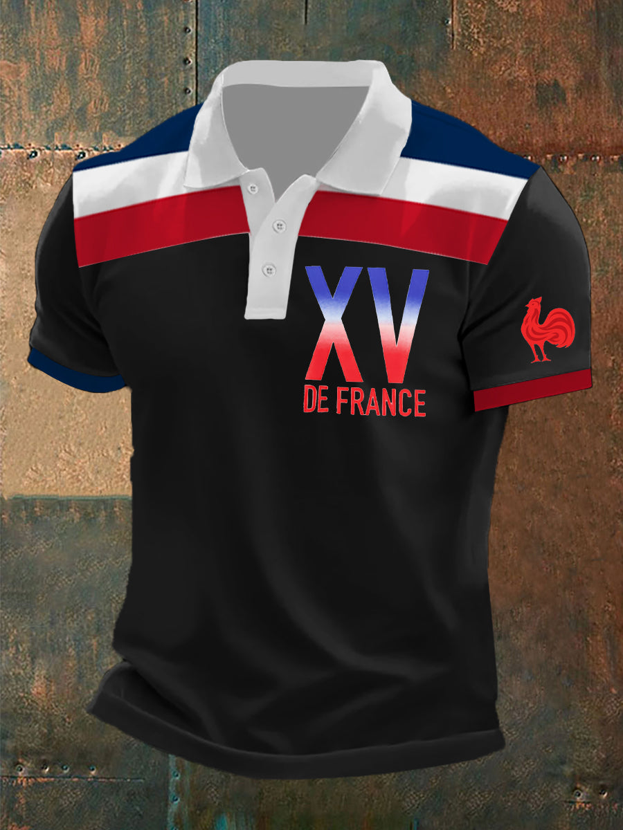 Rugby Chemise Homme Manches Courtes Classic T-Shirt Regular Stand Collar Shirt