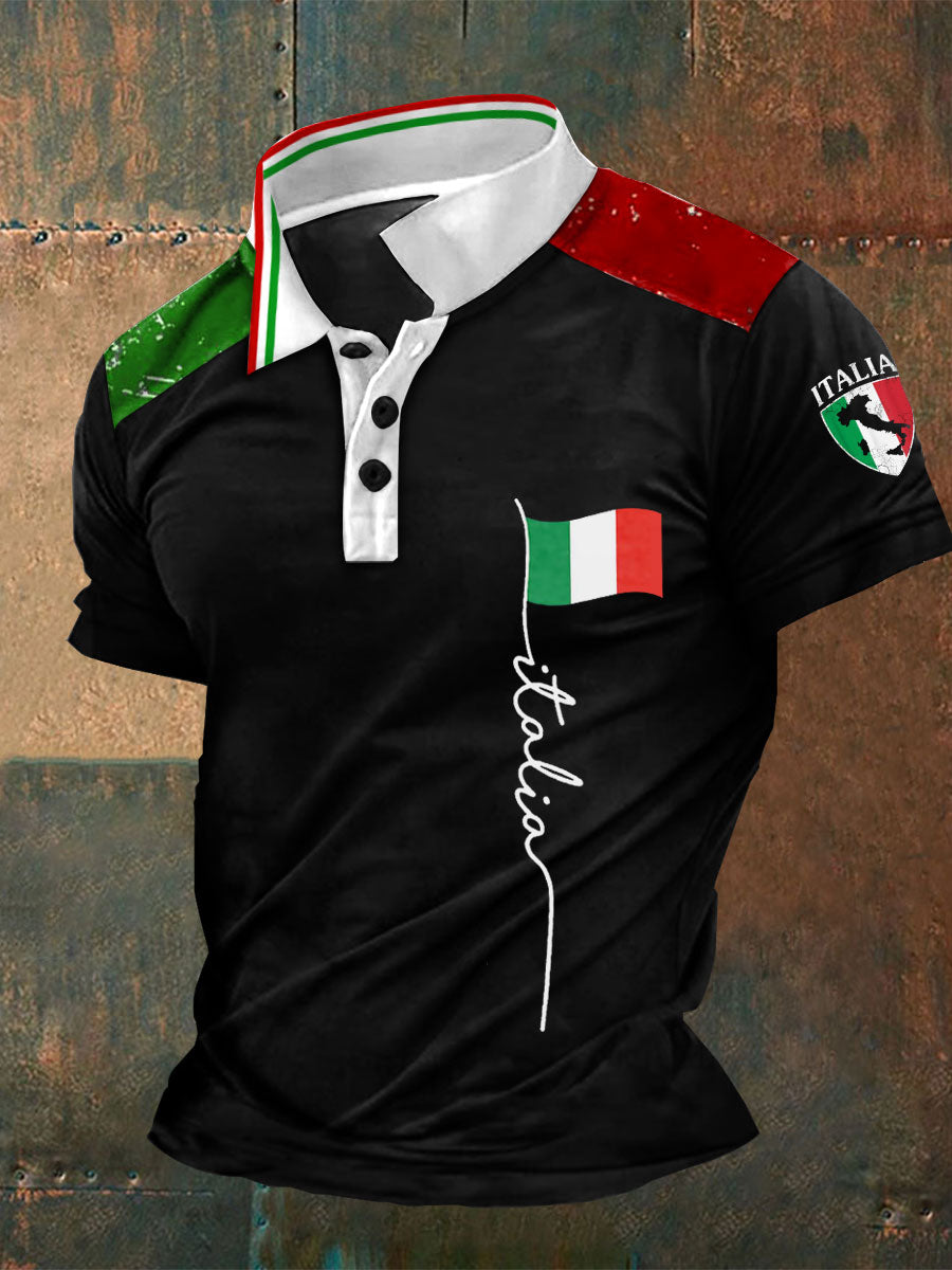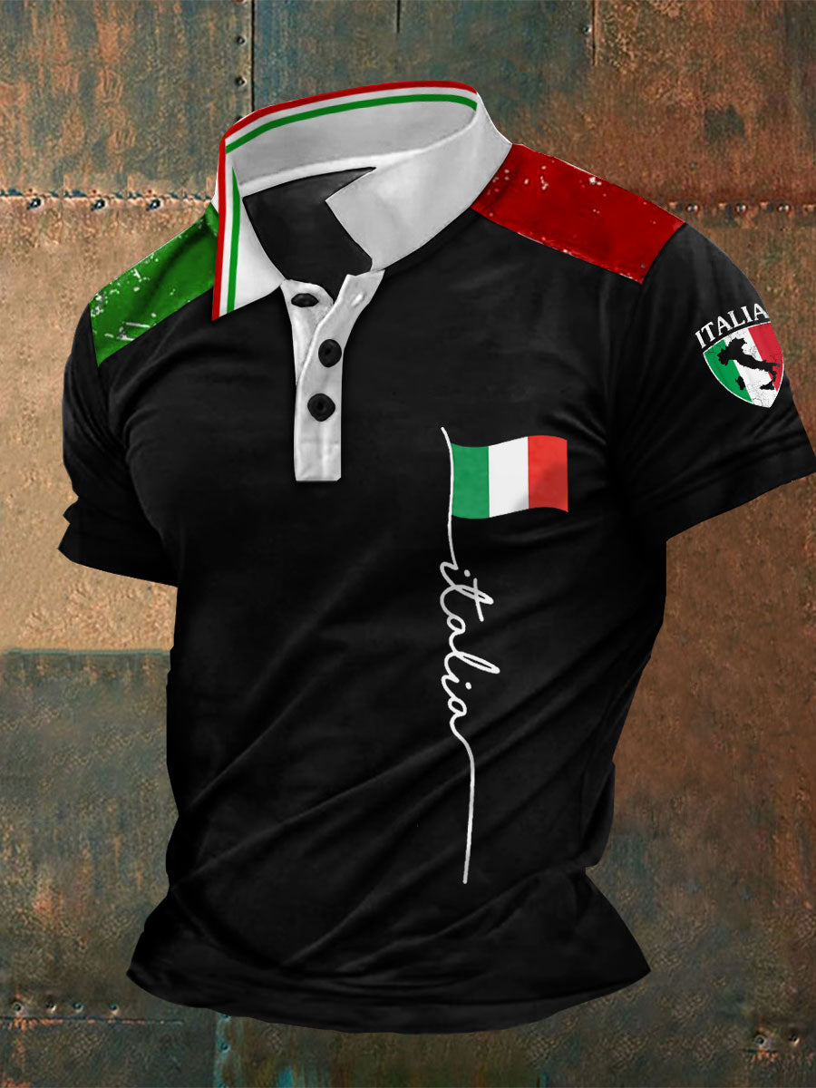 Polos à imprimé drapeau Italie pour hommes