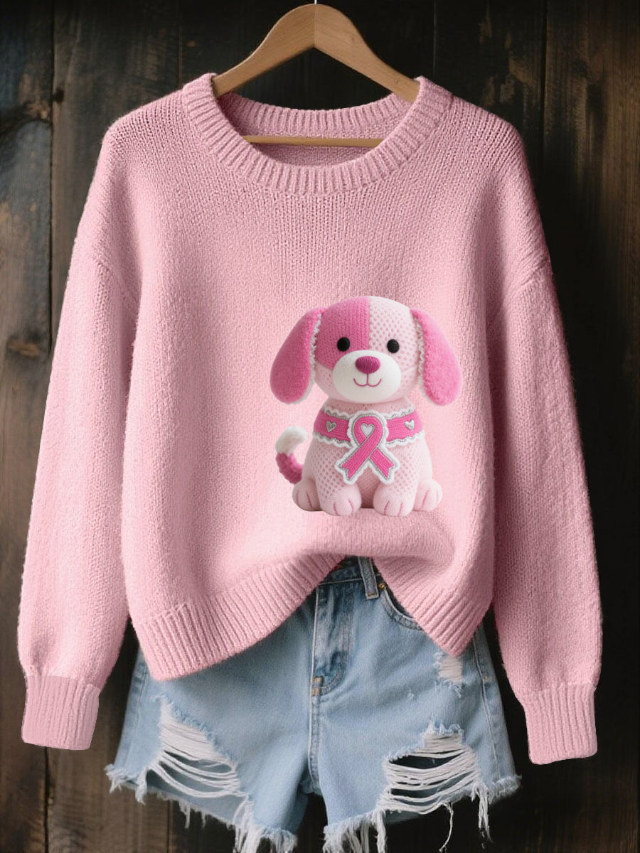 Pull Cozy en Tricot Femme Rose Imprimé Cancer Du Sein