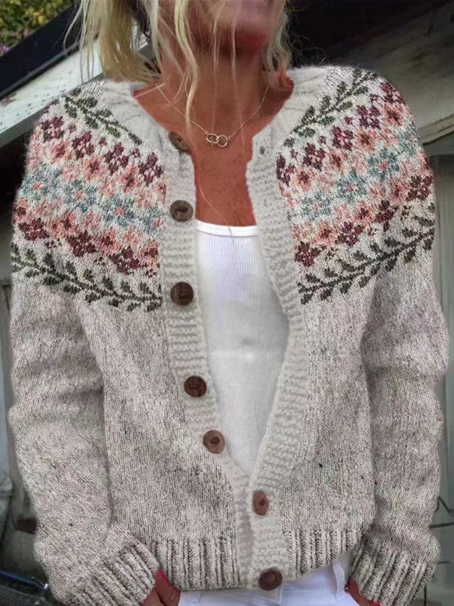 Pull islandais d'hiver pour femmes col rond lâche bouton Cardigan