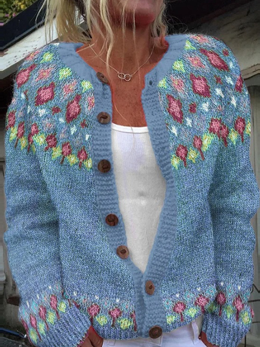 Pull islandais d'hiver pour femmes col rond lâche bouton Cardigan