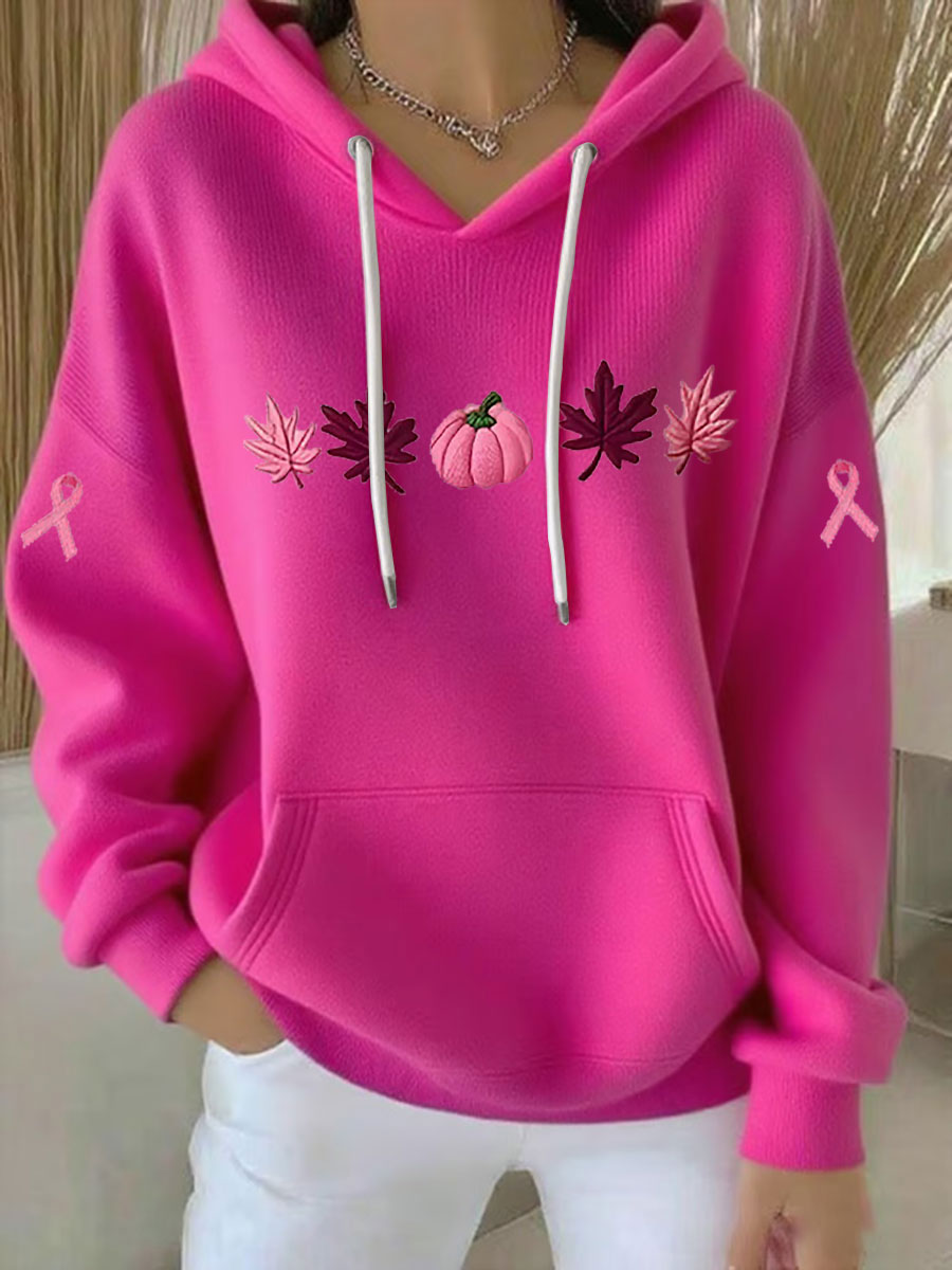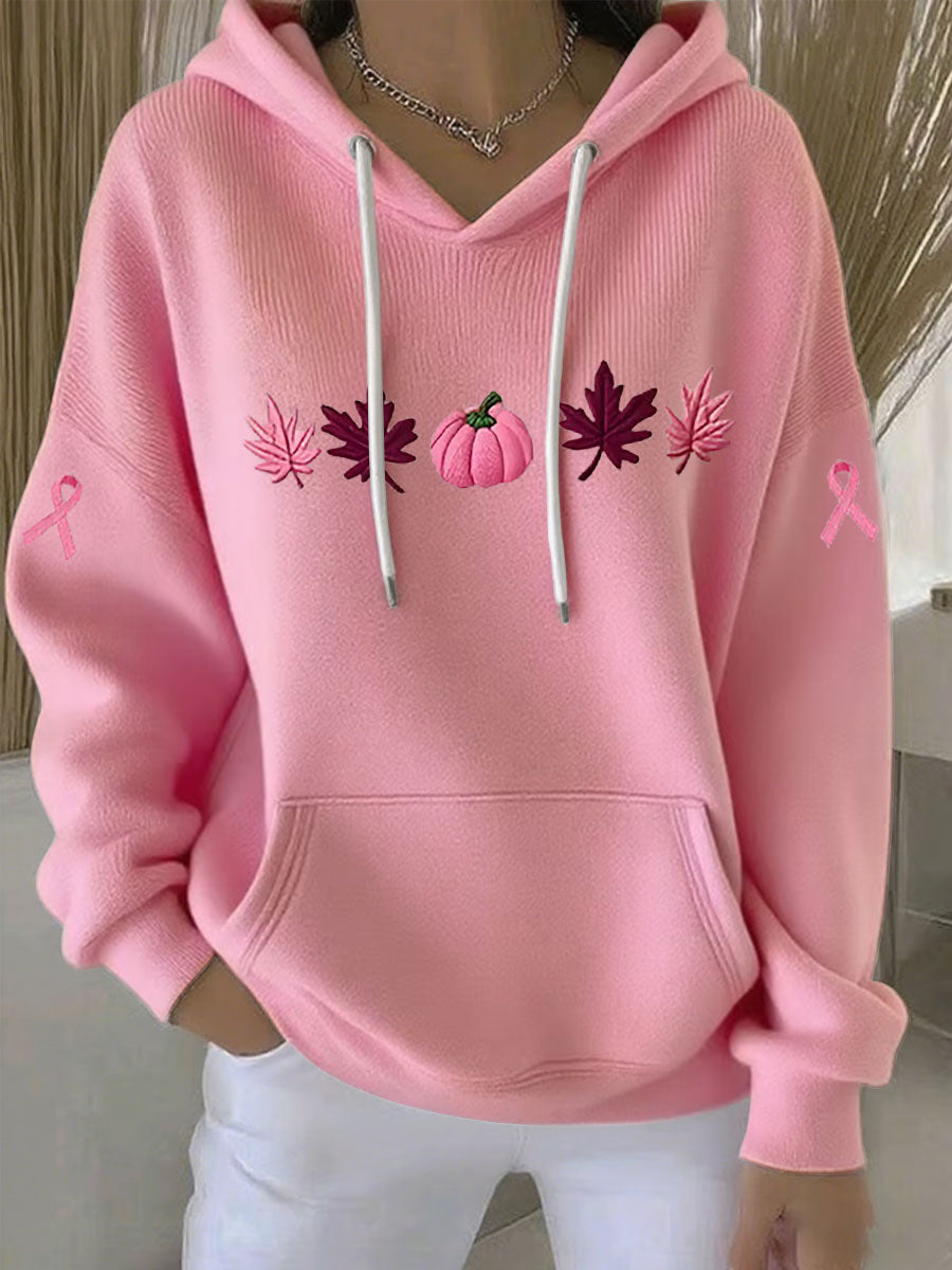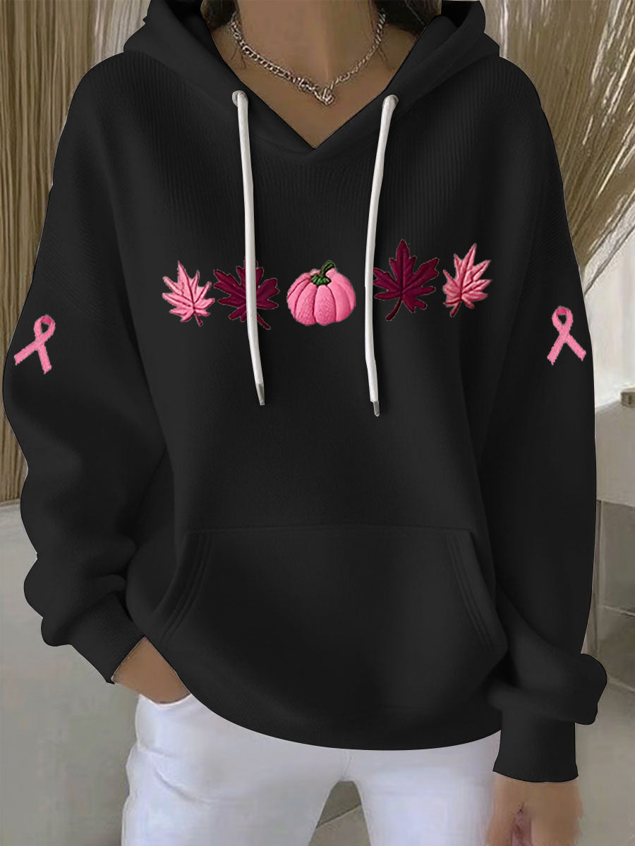 Sweat à capuche décontracté imprimé ruban rose pour femmes