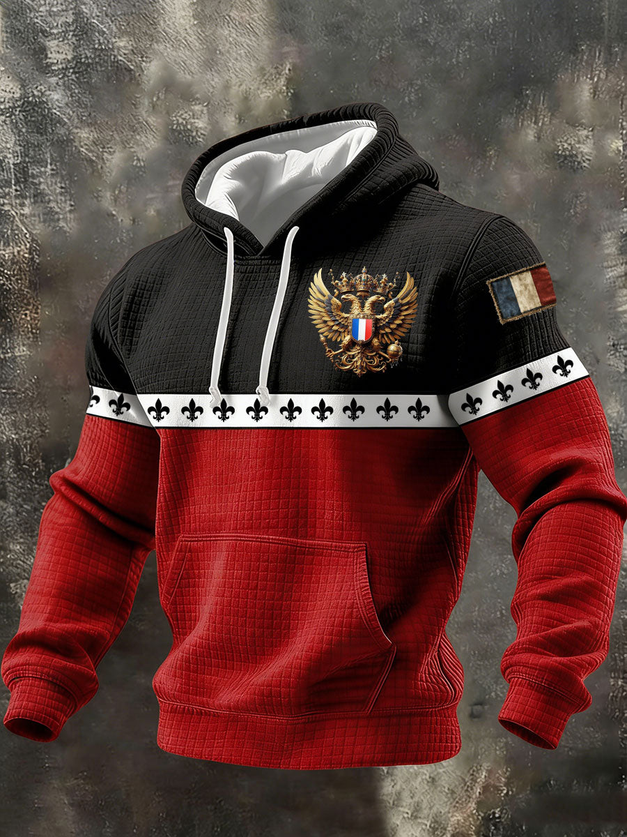Sweat à capuche en coton à carreaux imprimé français pour hommes
