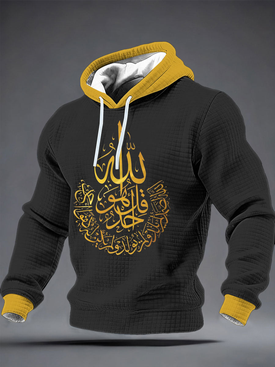 Sweat à capuche en coton calligraphie à carreaux pour hommes