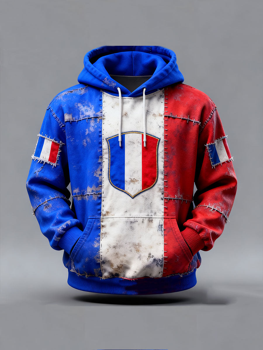 Sweat à capuche surdimensionné à épaules dénudées avec poches French Stamp