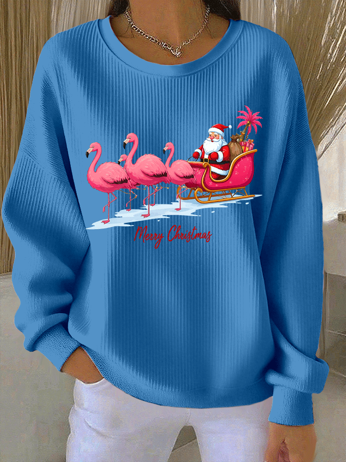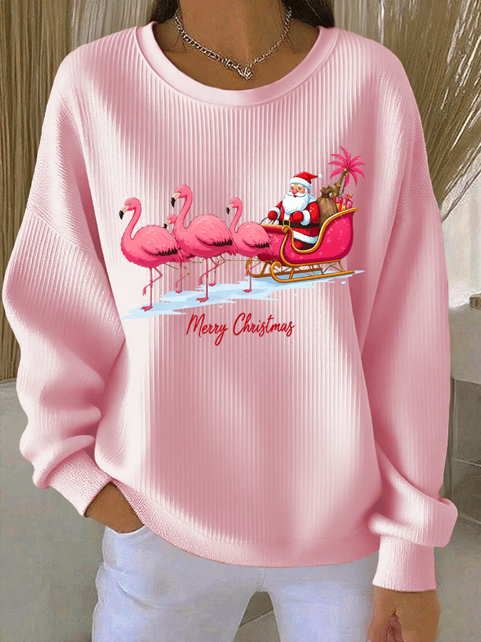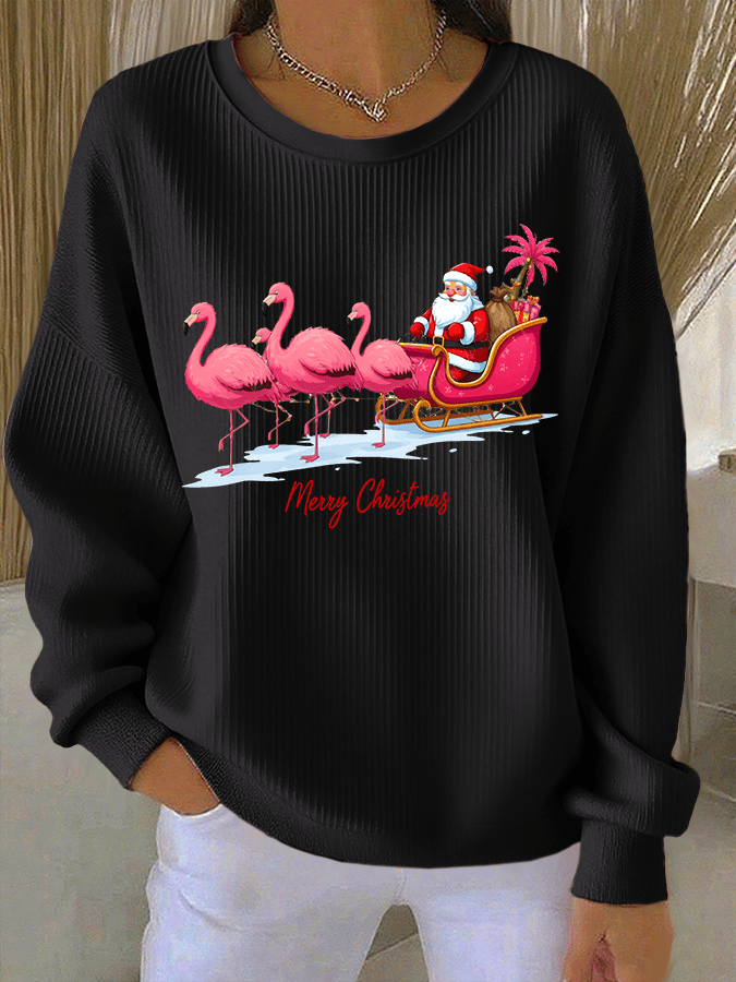 Sweat Femme Côtelé Imprimé Père Noël à Col Rond