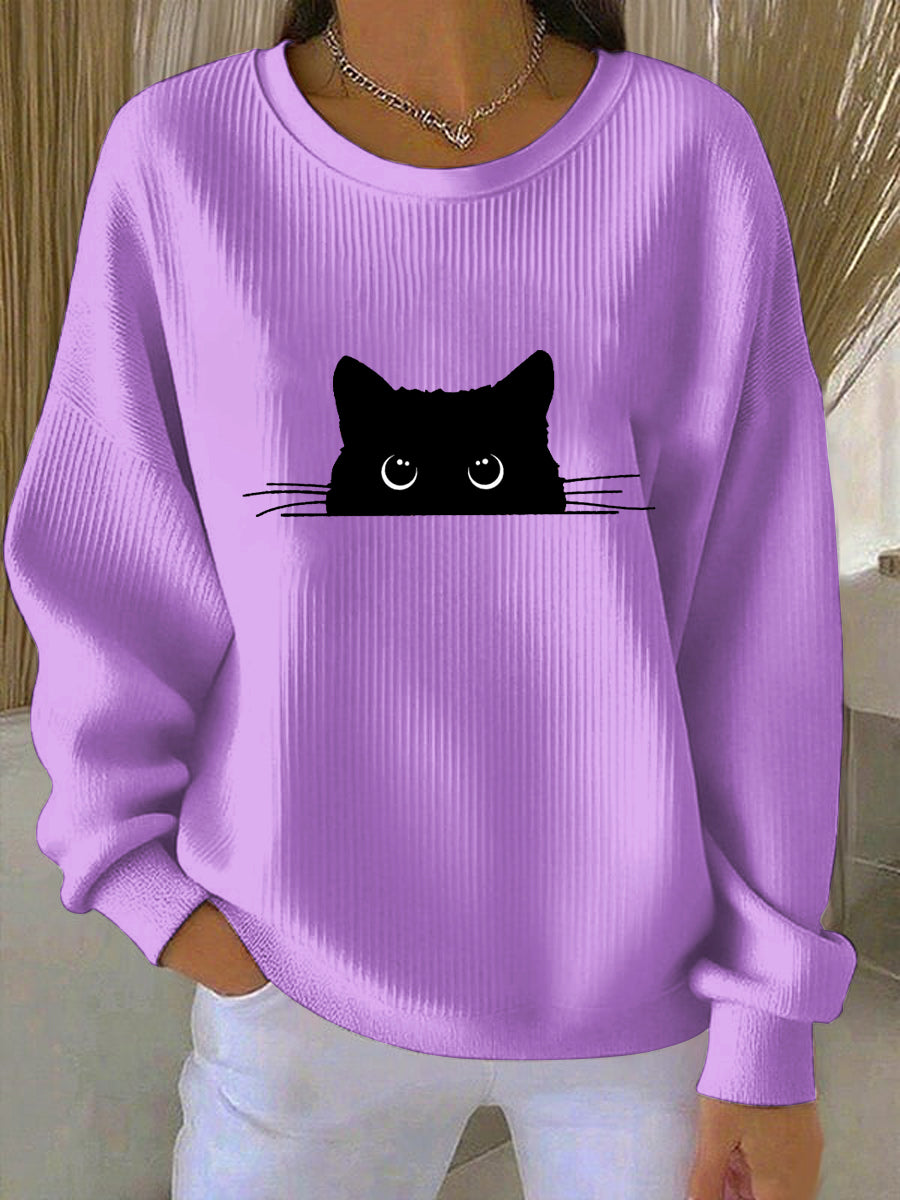 Sweat-shirt imprimé chat mignon pour femme