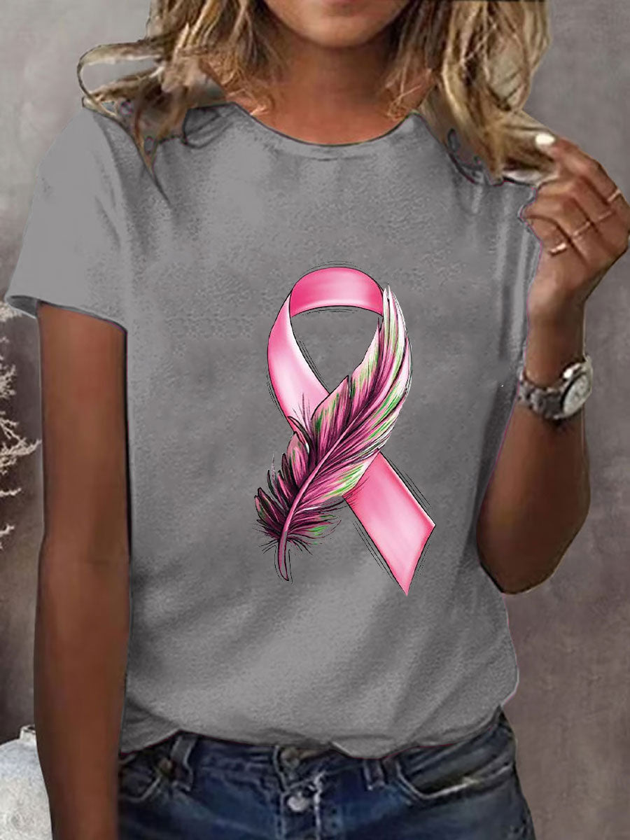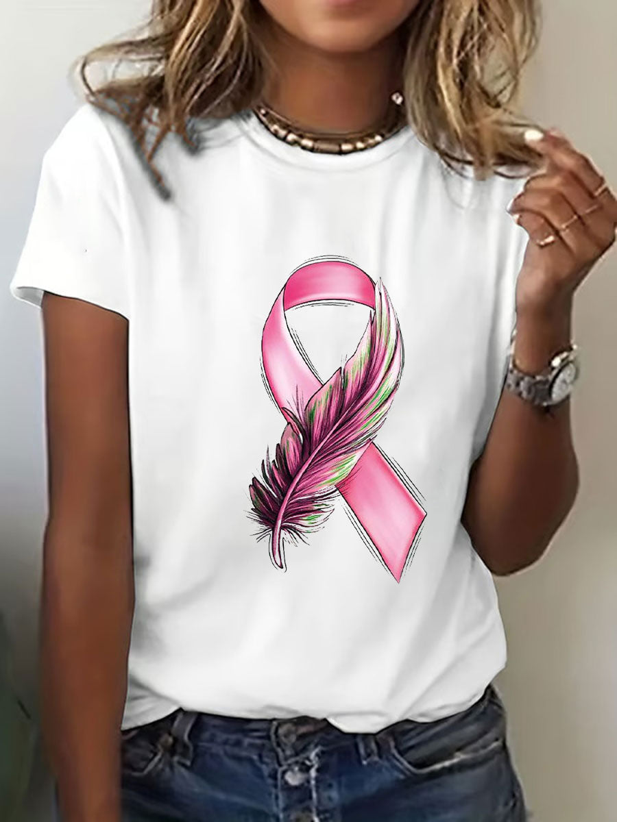 T-shirt à imprimé ruban rose pour femmes, sensibilisation au cancer du sein
