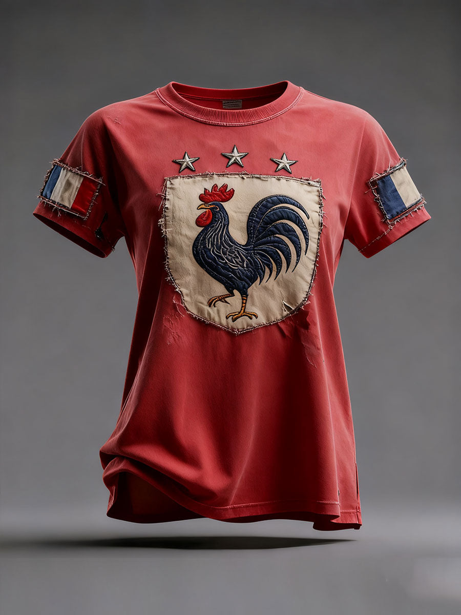 T-shirt à manches courtes Drapeau Français Le Coq Gaulois pour femme