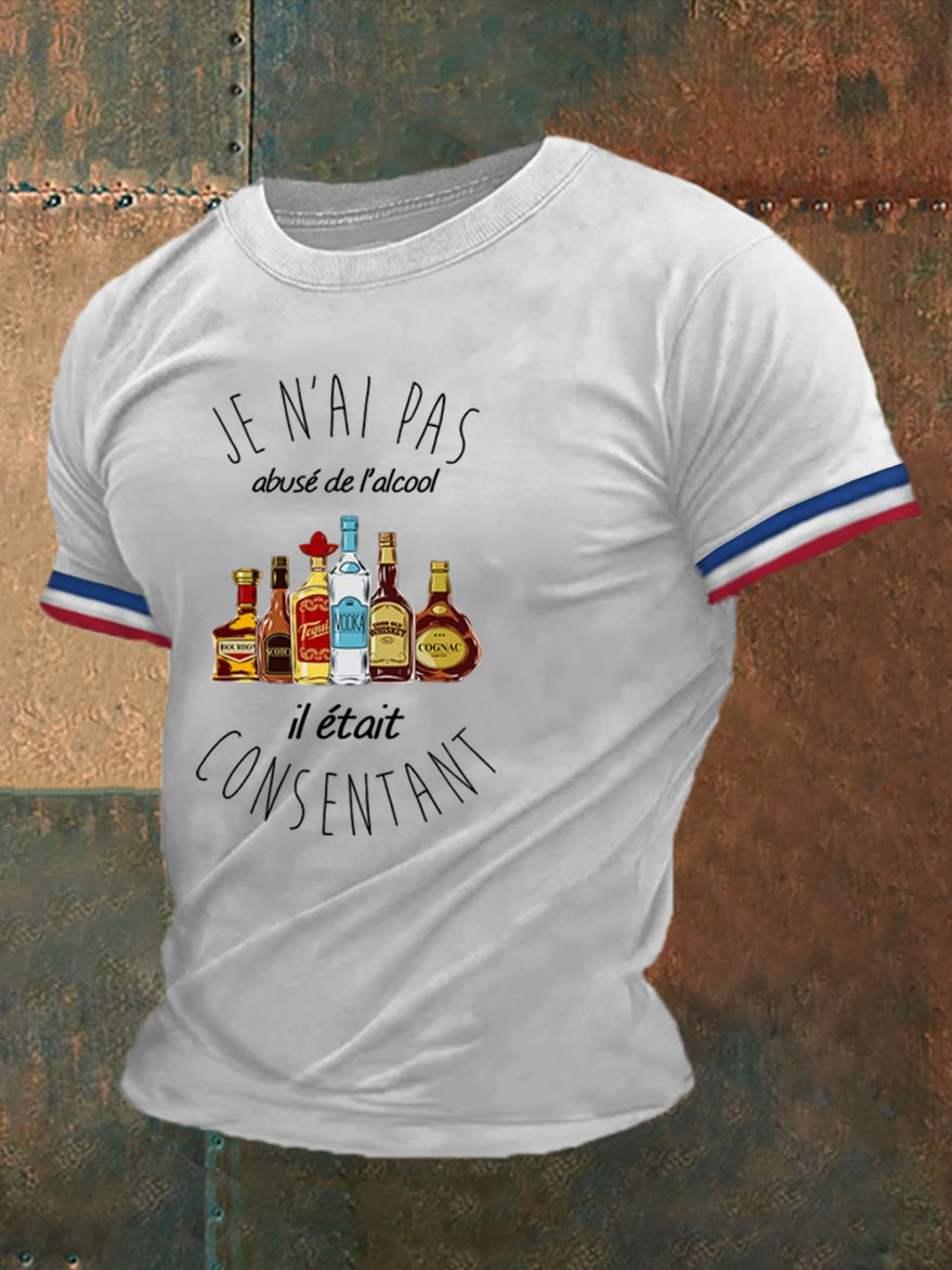 T-shirt à manches courtes imprimé d' humour sur l'Alcool Homme