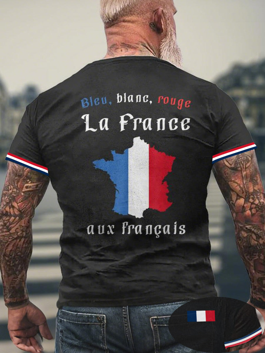 T-shirt Bleu Blanc Rouge France Aux Français Patriote Homme