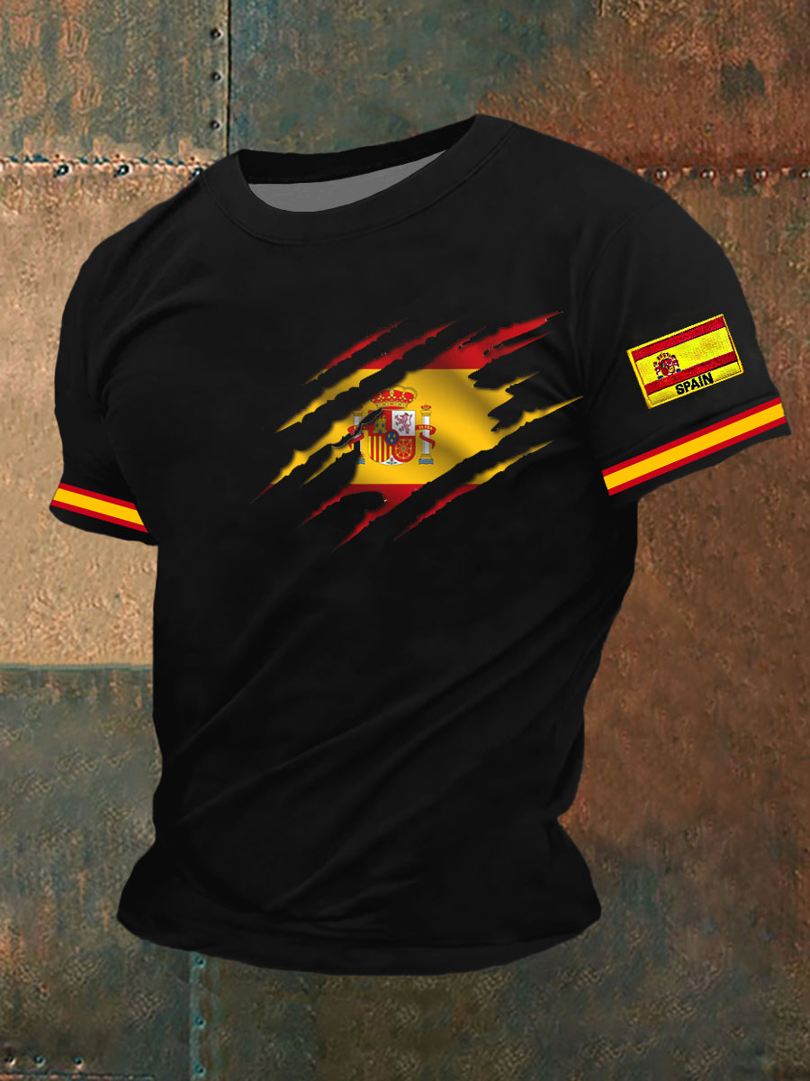 T-shirt brodé drapeau espagnol pour homme