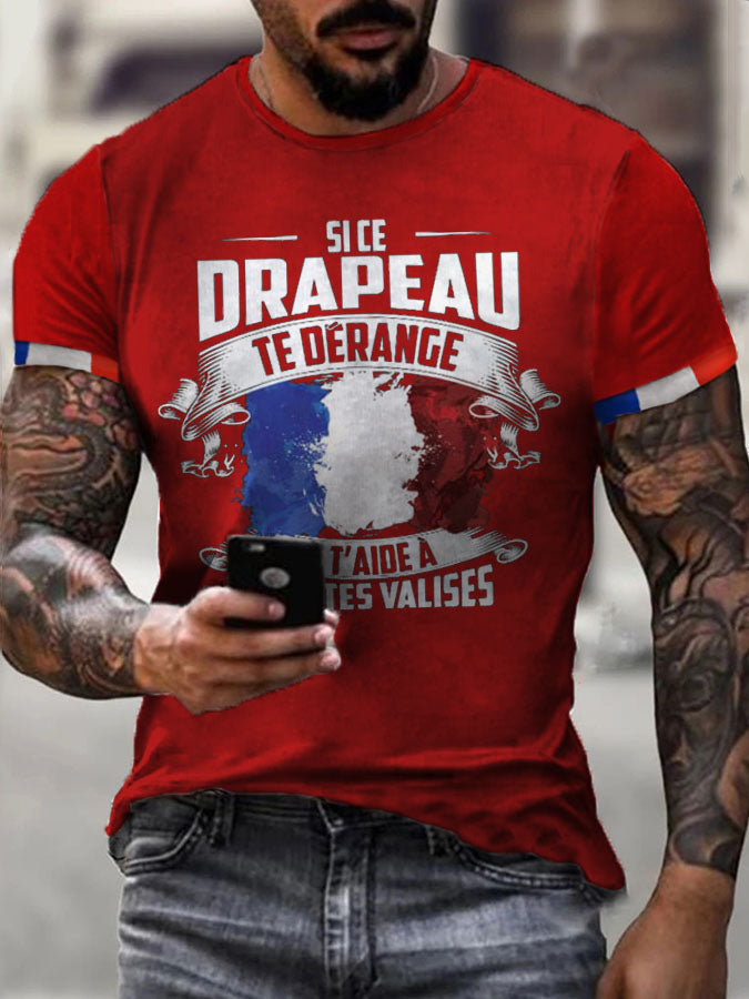 T-shirt imprimé à manches courtes Si Ce Drapeau Te Dérange Homme
