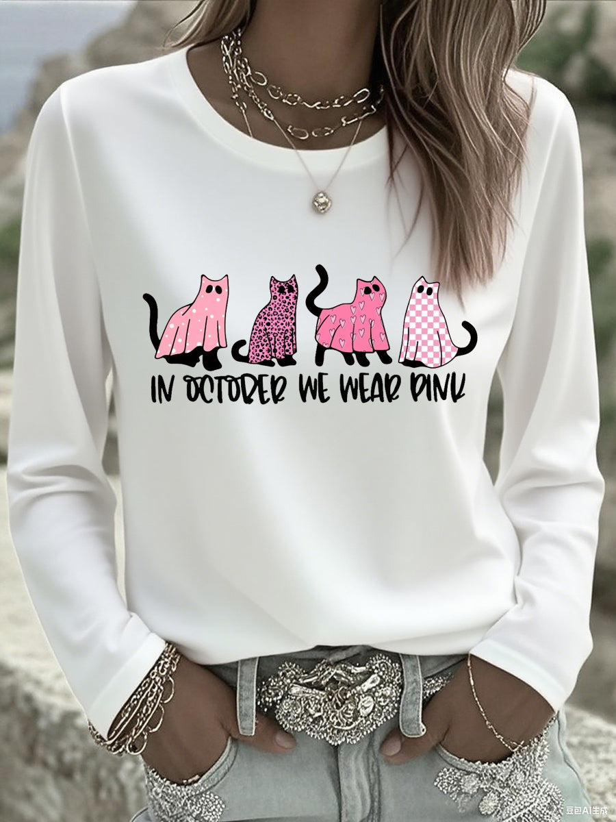 T-shirt rose à manches longues pour femme In october We Wear Breast Cancer Awareness
