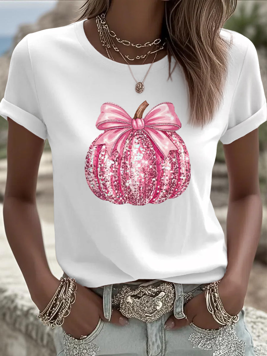 T-shirt rose de soutien de sensibilisation au cancer du sein à imprimé citrouille pour femmes